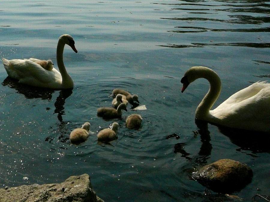 Photo of swans with babies.